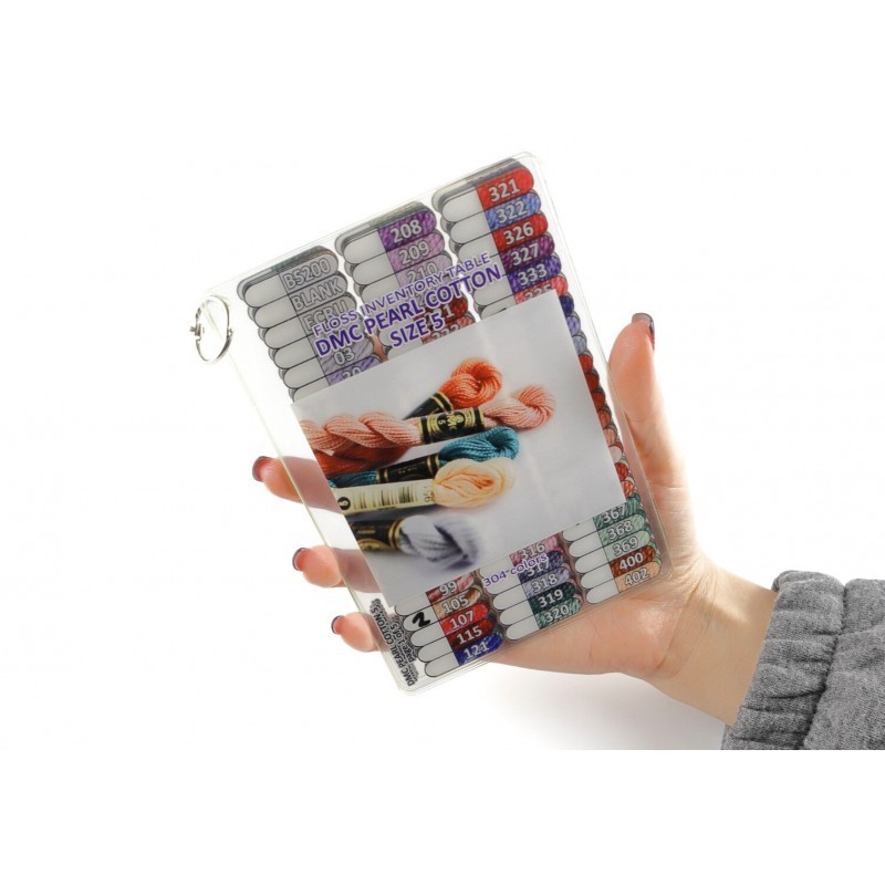 Таблица для инвентаризации нитей напечатана на прозрачном пластике. Она не портится от воды.