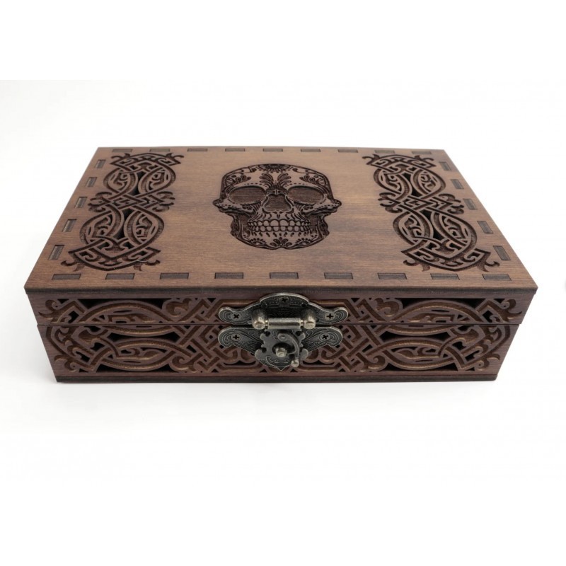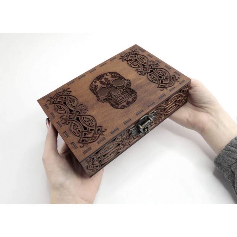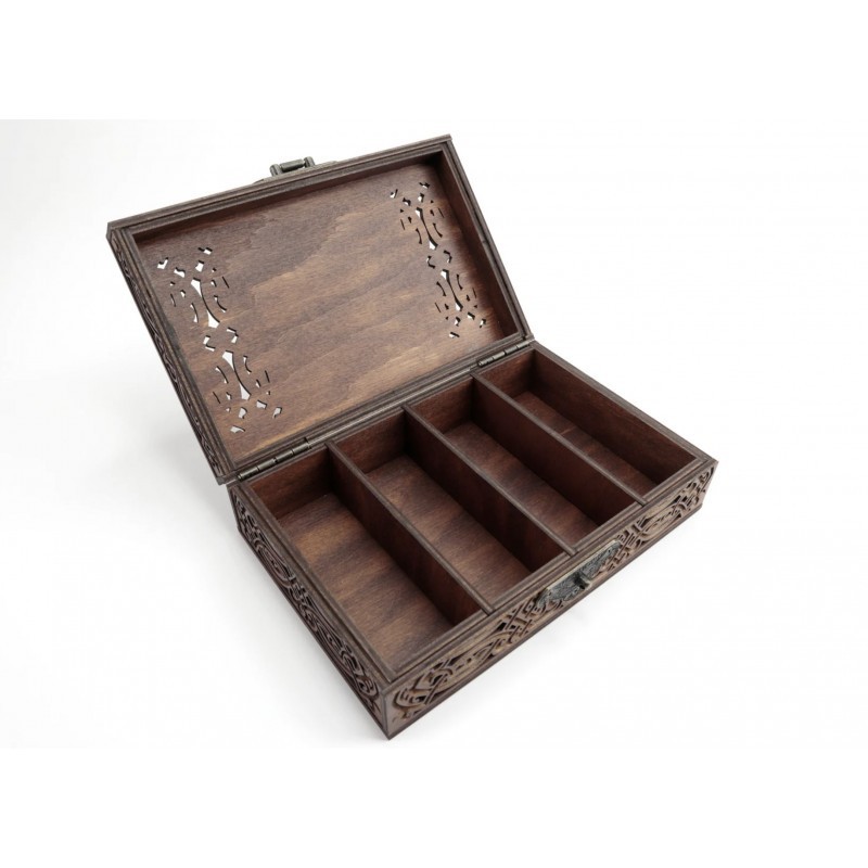 Размер деревянной шкатулки – 4,9x7,3x1,8 дюйма (125x185x45 мм).