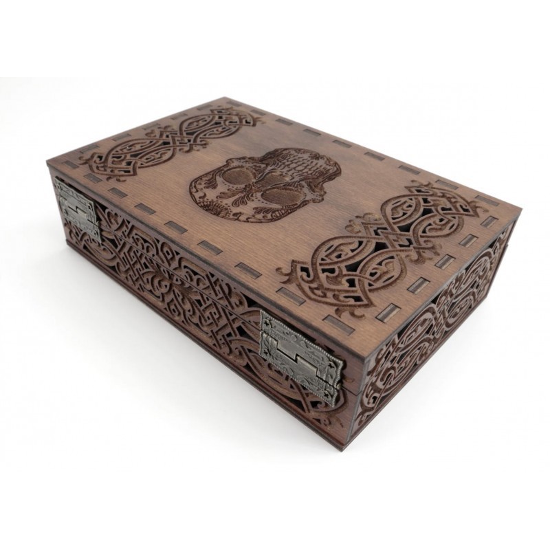 Дизайн нанесен лазерной гравировкой. Ящик покрыт шелковистым матовым лаком.