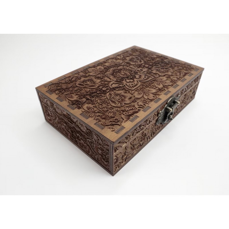 Дизайн нанесен лазерной гравировкой. Ящик покрыт шелковистым матовым лаком.