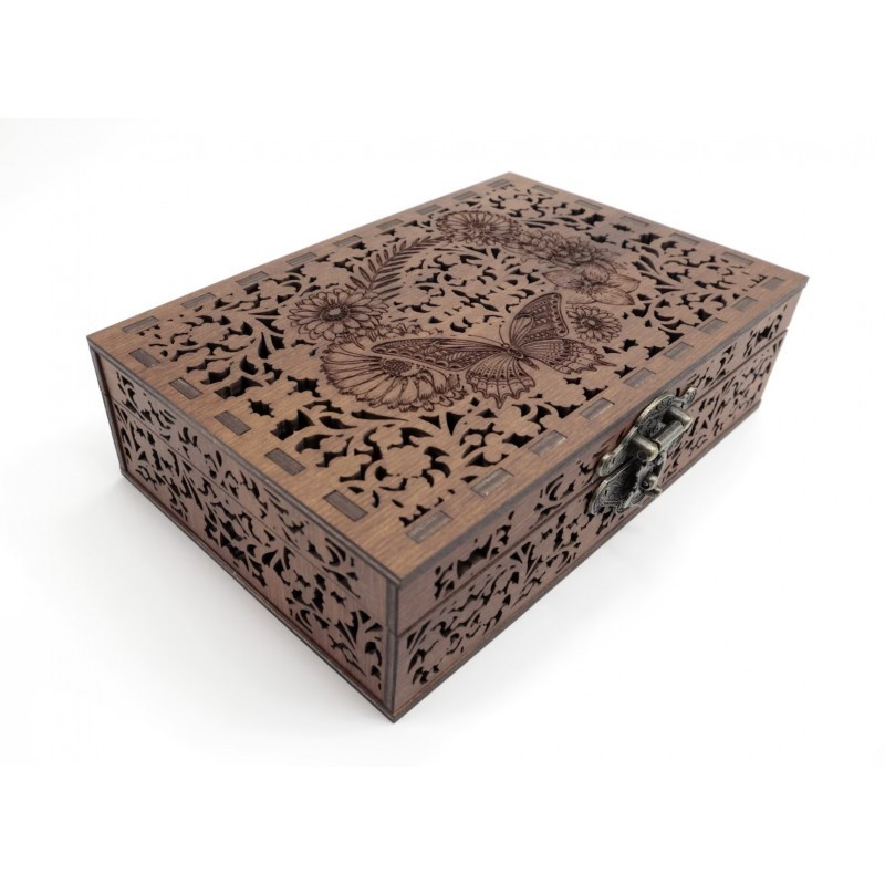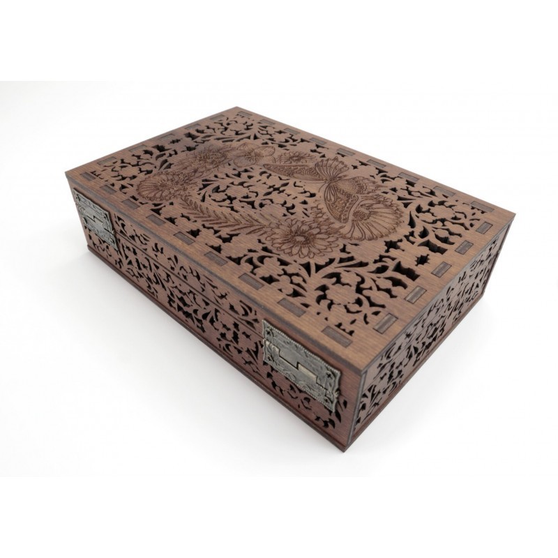 Дизайн нанесен лазерной гравировкой. Ящик покрыт шелковистым матовым лаком.