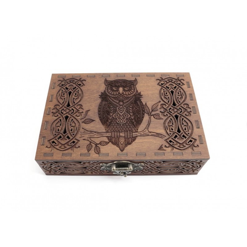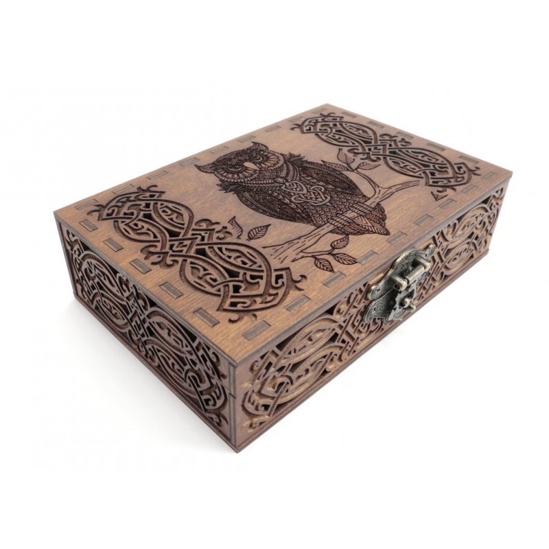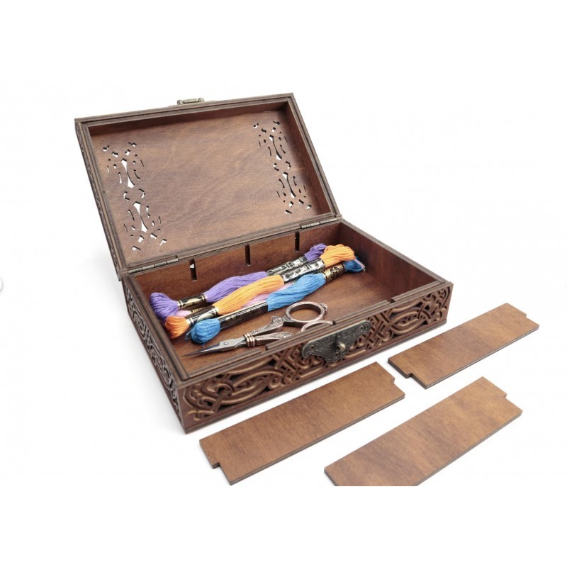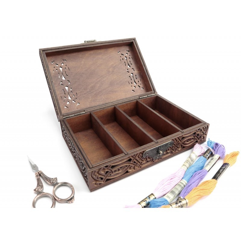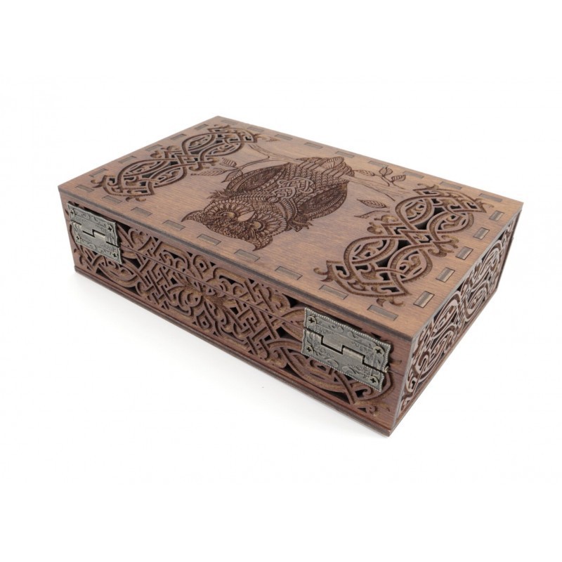 Размер деревянной шкатулки – 4,9x7,3x1,8 дюйма (125x185x45 мм).