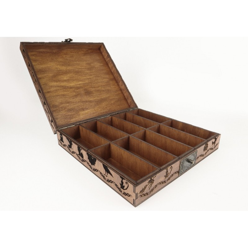 Дизайн нанесен лазерной гравировкой. Ящик покрыт шелковистым матовым лаком.