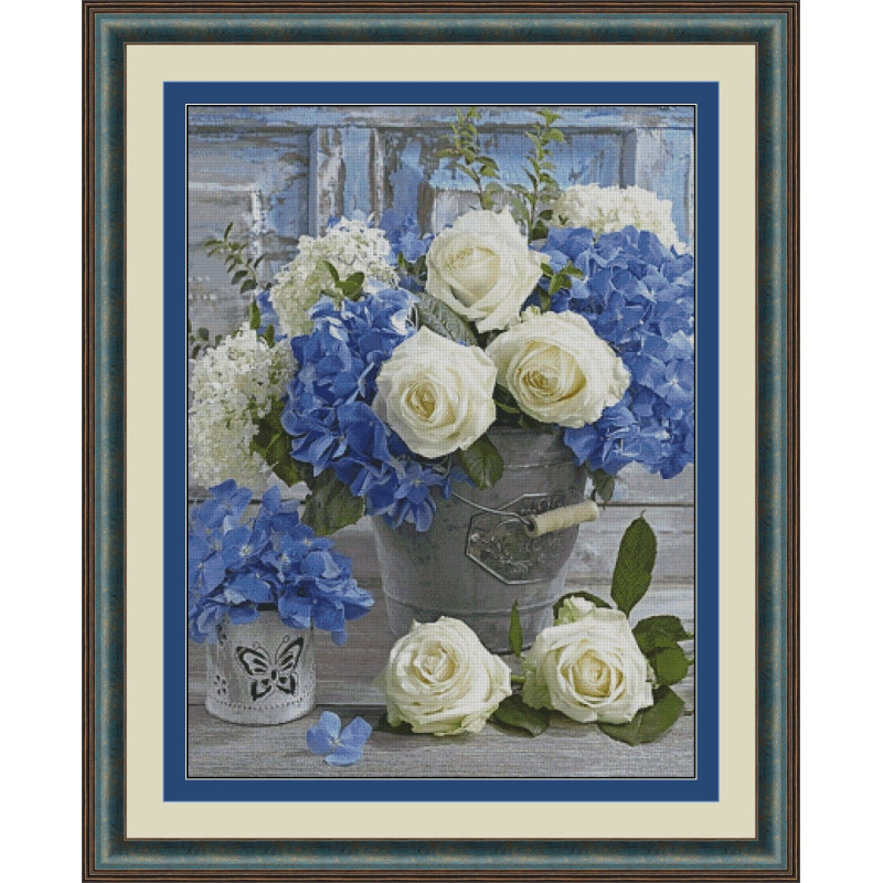 Бело-голубой букет Электронная схема для вышивания крестиком КВ-0002ИХ