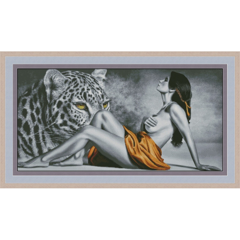 Девушка с леопардом Электронная схема для вышивания крестиком Л-0004ИХ