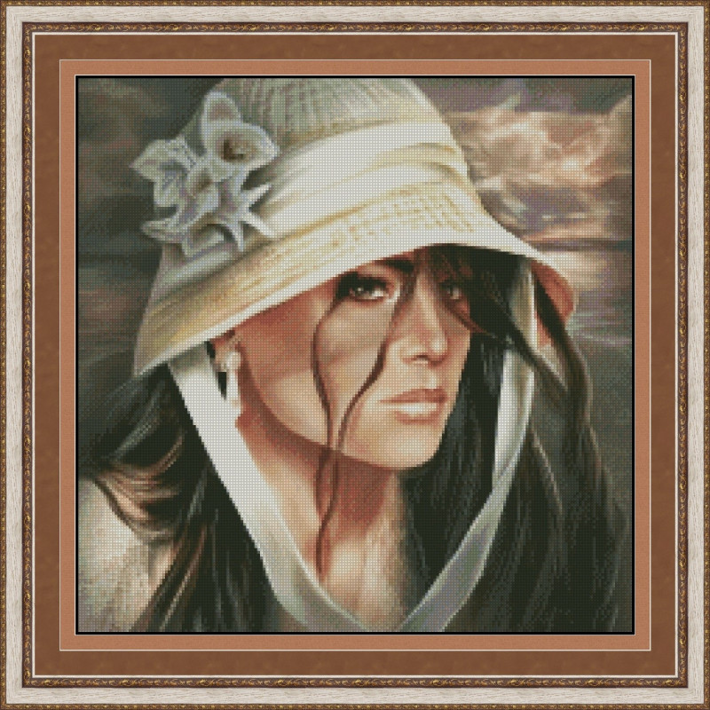 Девушка в шляпе Электронная схема для вышивания крестиком Л-0007ИХ
