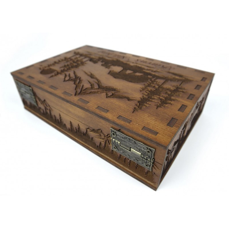 Дизайн нанесений лазерним гравіюванням. Ящик покритий шовковистим матовим лаком.