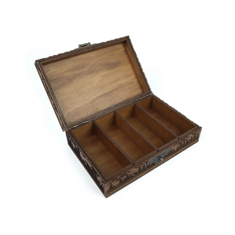 Розмір дерев'яної скриньки – 4,9x7,3x1,8 дюйма (125x185x45 мм).