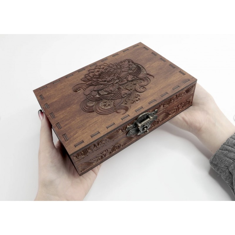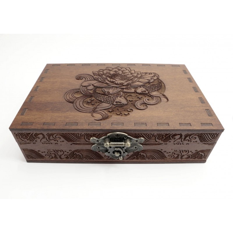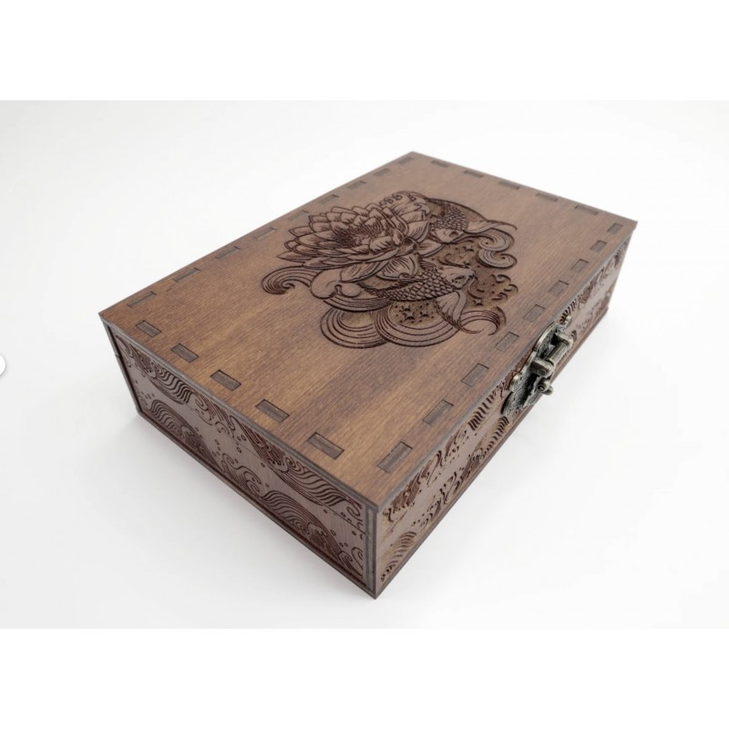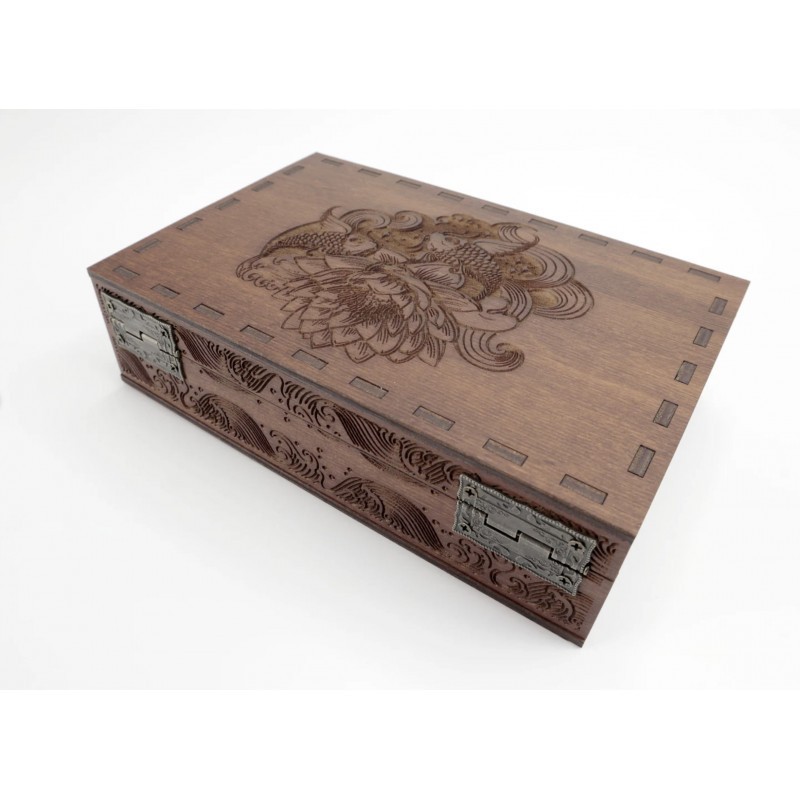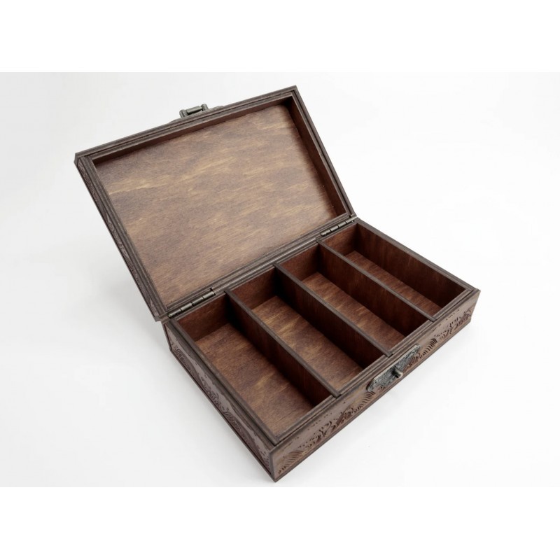Дизайн нанесений лазерним гравіюванням. Ящик покритий шовковистим матовим лаком.
