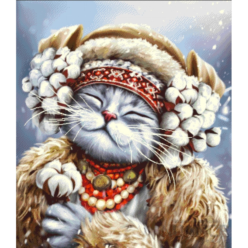 Зимова пані Киця Електронна схема для вишивки бісером С-009НВ