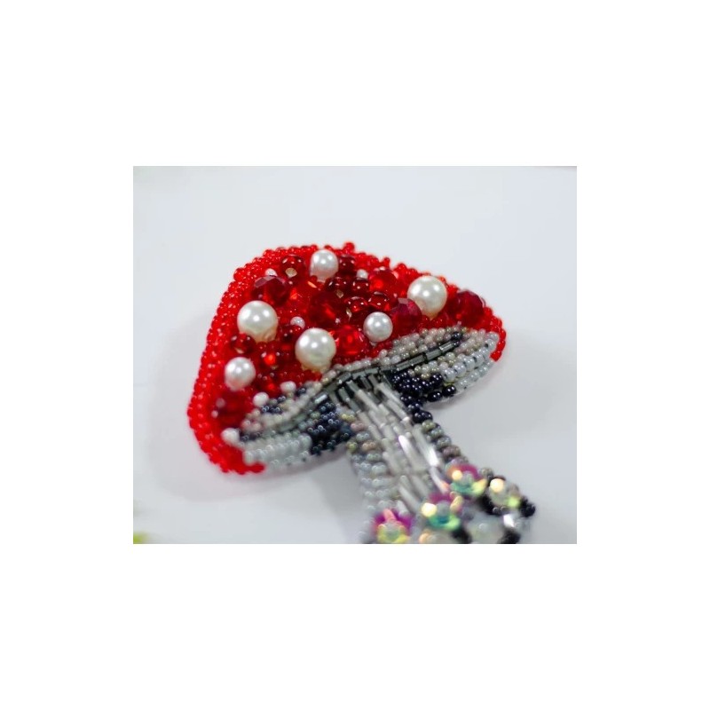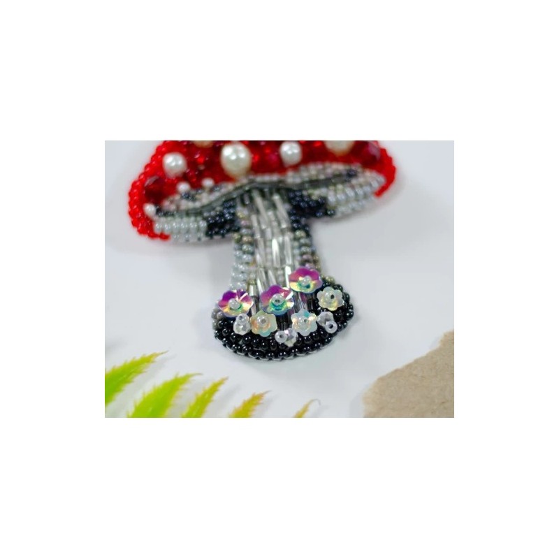 Розмір полотна для вишивки 140*90мм. Додатково комплектується намистинами (PRECIOSA №6) - 10шт., мікробісером (PRECIOSA №13) - 4 кольори, голкою для вишивки мікробісером, декоративним камінням форма рондель - 5шт., біконус - 3шт., стеклярус - 2 види (45шт.), напівсфера. паєтки - 2 види (10шт), нитками для вишивки бісером, фурнітурою для виготовлення прикраси-брошки - декоративна застібка, та детальною поетапною ілюстрованою інструкцією з вишивки та подальшого оформлення відшитої прикраси.