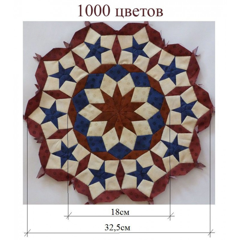 Опис: Комплект для виготовлення цього блоку включає 7 шаблонів. Розмір блоку регулюється кількістю зшитих деталей.
