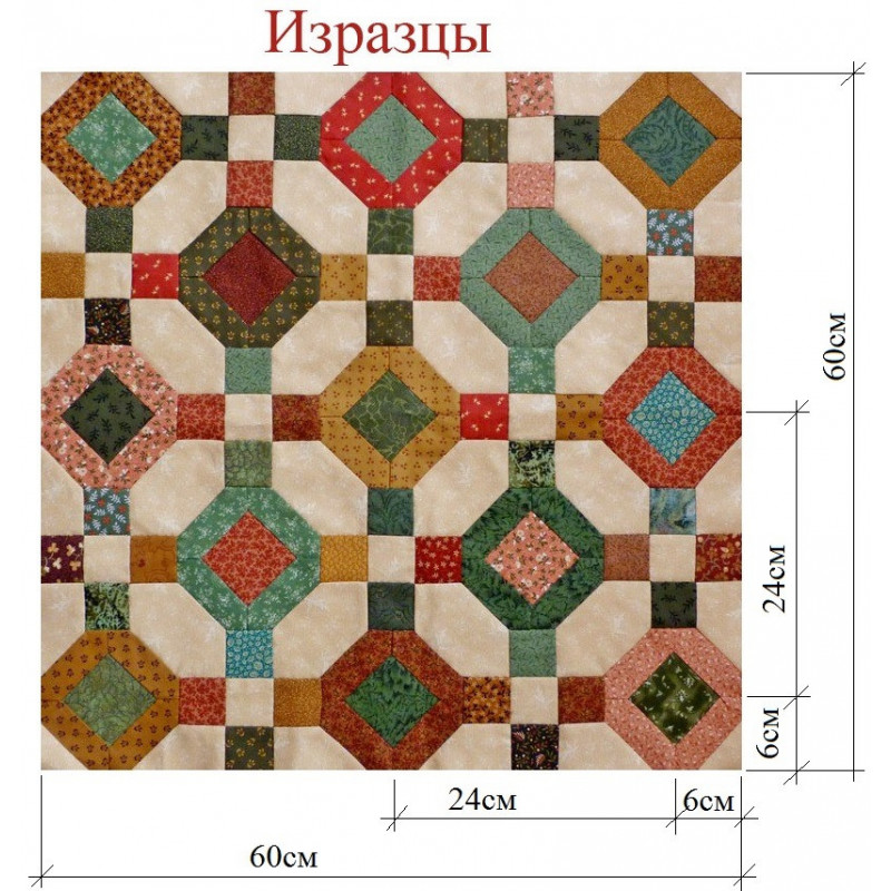 Опис: Комплект для виготовлення цього блоку включає 7 шаблонів. Розмір блоку регулюється кількістю пошитих деталей.