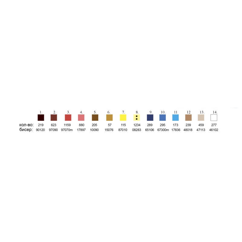 Також є титулка-ключ у якій прописані рекомендовані кольори бісеру Preciosa та їх кількість.