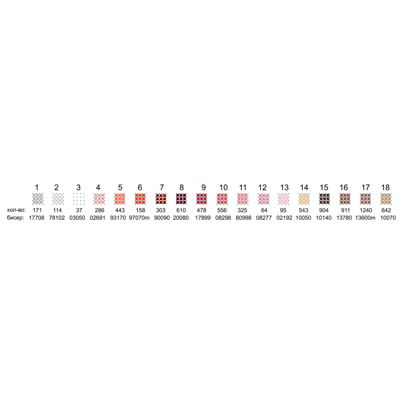 Також є титулка-ключ у якій прописані рекомендовані кольори бісеру Preciosa та їх кількість.