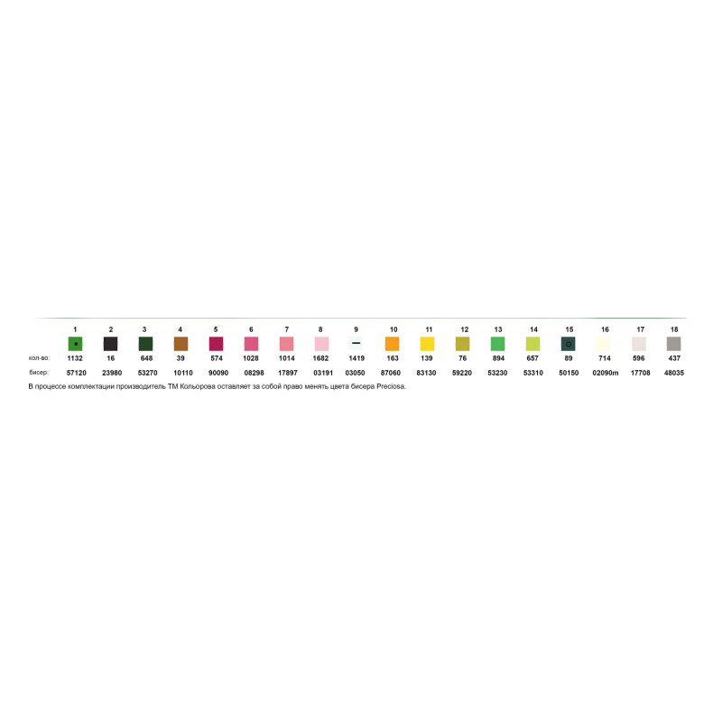 Також є титулка-ключ у якій прописані рекомендовані кольори бісеру Preciosa та їх кількість.