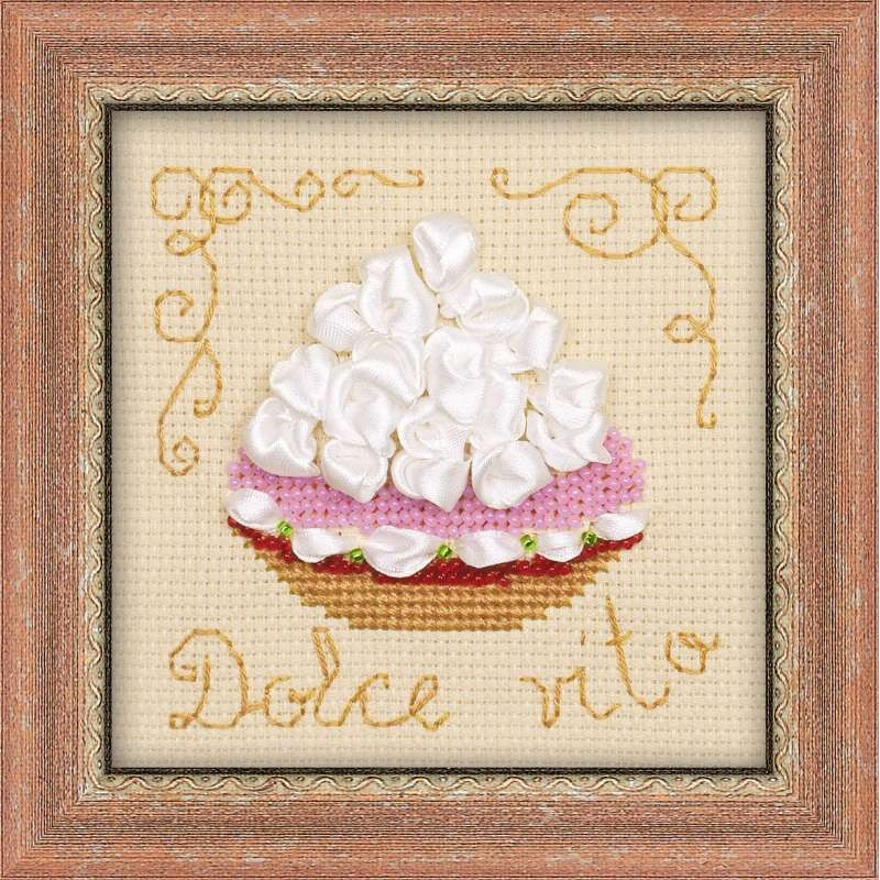 До складу набору входить: канва Аіда 14 бежева, нитки муліне Anchor, бісер, намистини, стрічки, кольорова схема, голка, інструкція, 5 кольорів