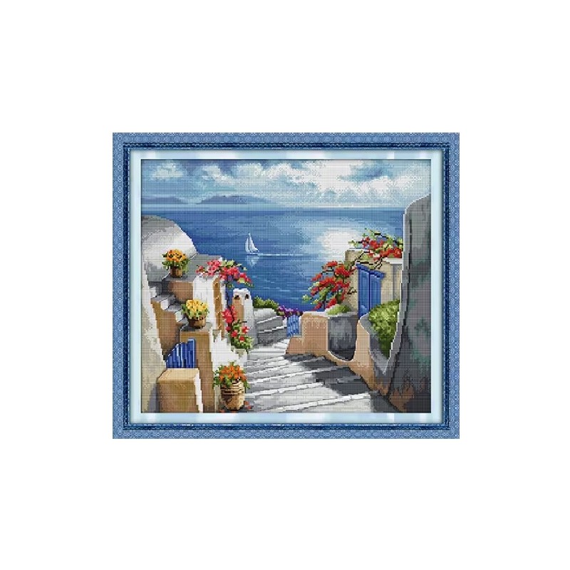 Найменування: Синій санторіні Набір для вишивання хрестиком з друкованою схемою на тканині Joy Sunday FA300