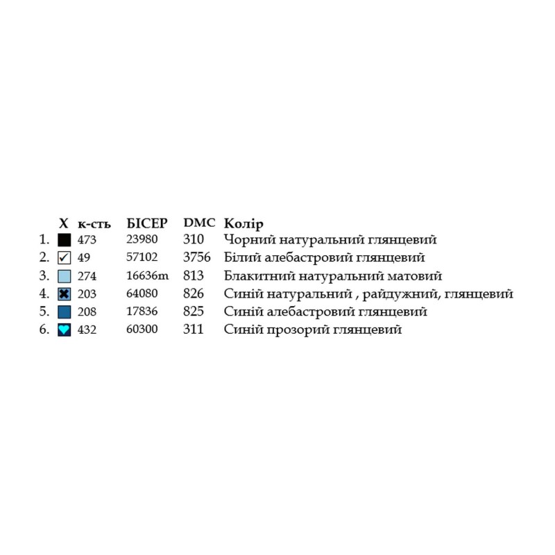- титулка-ключ з рекомендованими кольорами бісера Preciosa або муліне DMC та їх кількістю.