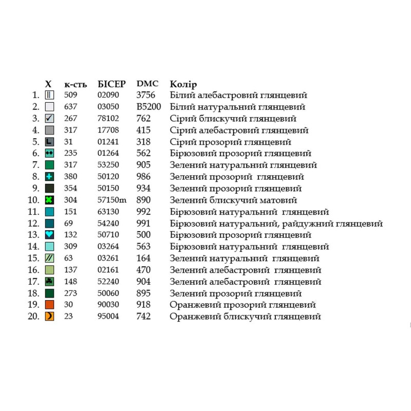 - титулка-ключ з рекомендованими кольорами бісера Preciosa або муліне DMC та їх кількістю.