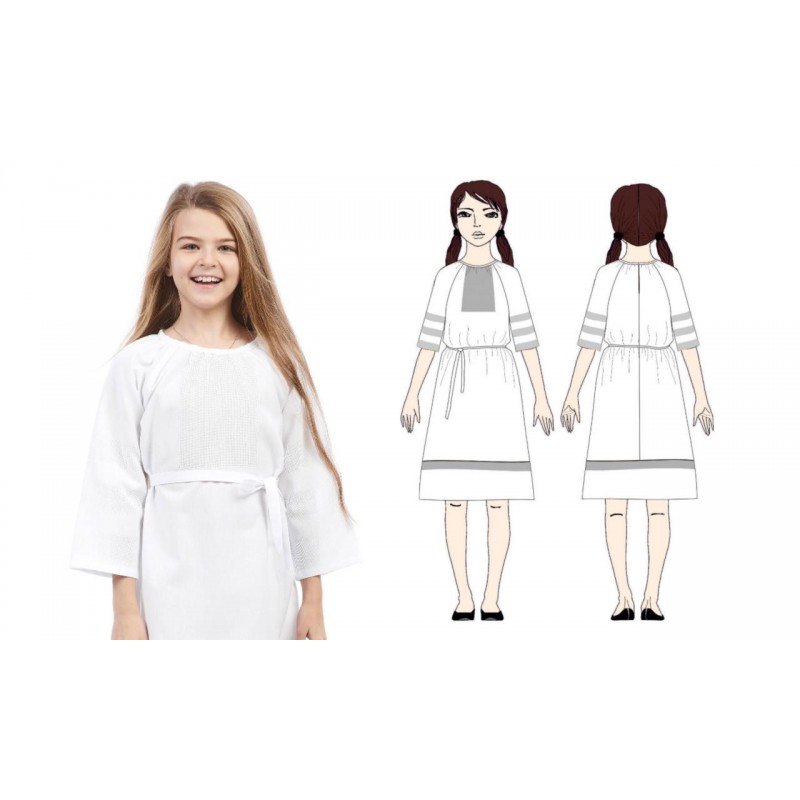 Готове плаття для дівчаток зі вставками під вишивку нитками та бісером. Вставки розташовані так, як показано на малюнку. Плаття вільного крою.