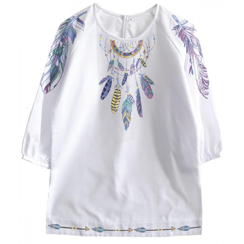 Готова жіноча біла сорочка із вставками під вишивку нитками та бісером. Вставки розташовані так, як показано на малюнку. Сорочка з прилаштованим рукавом 3/4.