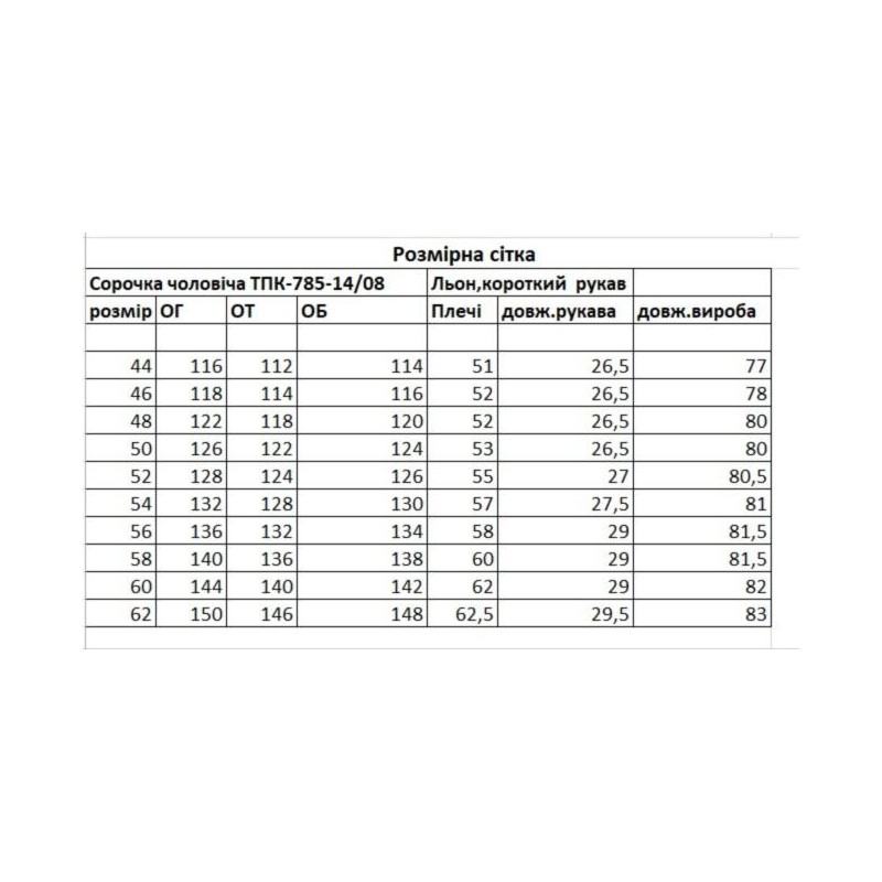 Найменування: Сорочка чоловіча, льон, короткий рукав, розмір 58