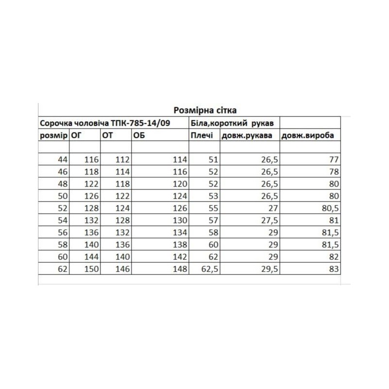Найменування: Сорочка чоловіча, біла, короткий рукав, розмір 58