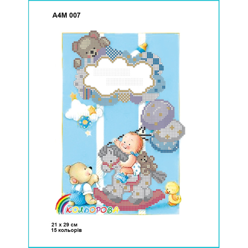 Наименование: Детская метрика для мальчика Схема для вышивания бисером ТМ КОЛЬОРОВА А4М 007