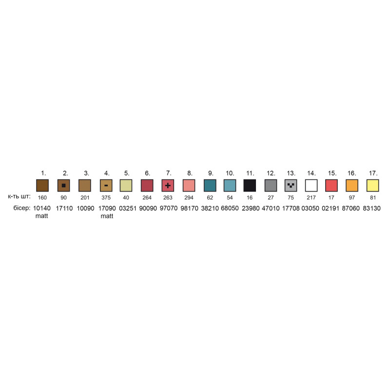 Также есть титулка-ключ в которой прописаны рекомендованные цвета бисера Preciosa и их количество.