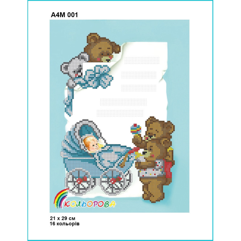 Наименование: Детская метрика для мальчика Схема для вышивания бисером ТМ КОЛЬОРОВА А4М 001