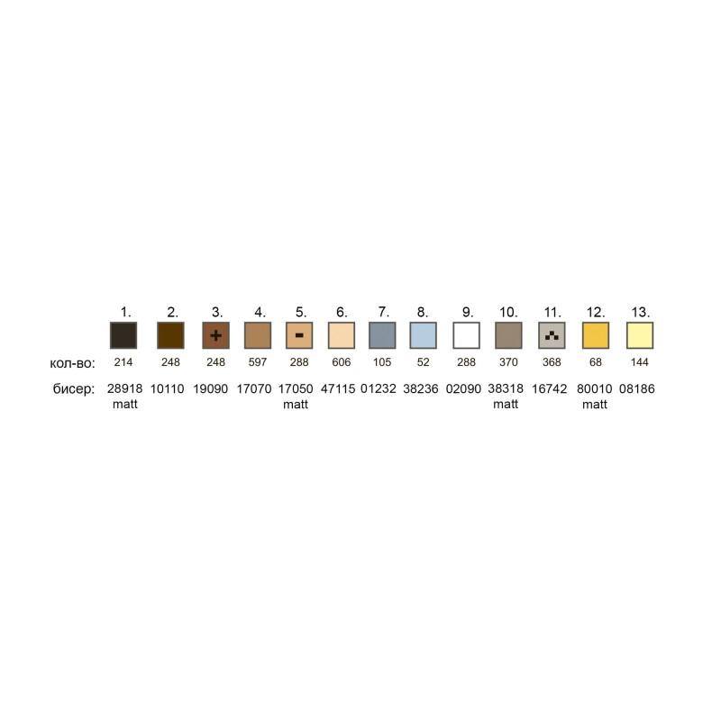 Также есть титулка-ключ в которой прописаны рекомендованные цвета бисера Preciosa и их количество.
