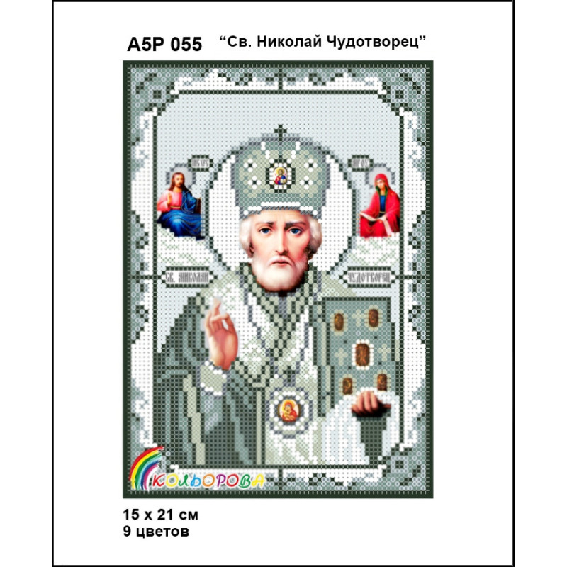 Николай Чудотворец Схема-икона для вышивания бисером ТМ КОЛЬОРОВА А5Р 055