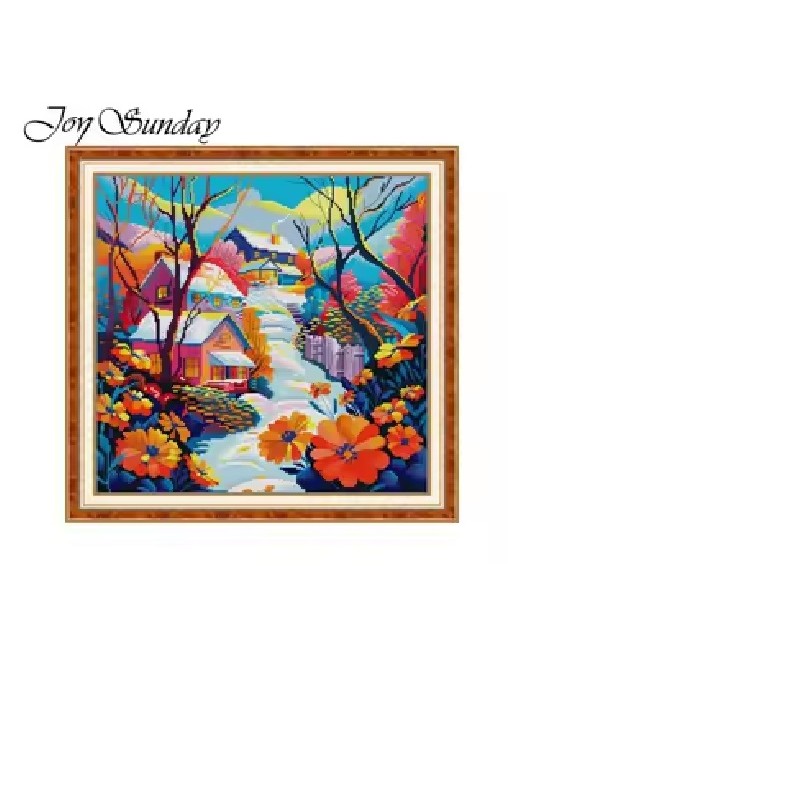 Наименование: Зимний пейзаж 9 Набор для вышивания крестом с печатной схемой на ткани Joy Sunday FA522