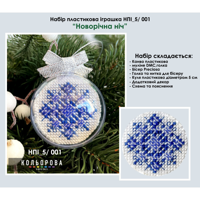 Наименование: Новогодняя ночь Набор для вышивки новогодней игрушки в пластиковой основе ТМ КОЛЬОРОВА НПІ_5/001