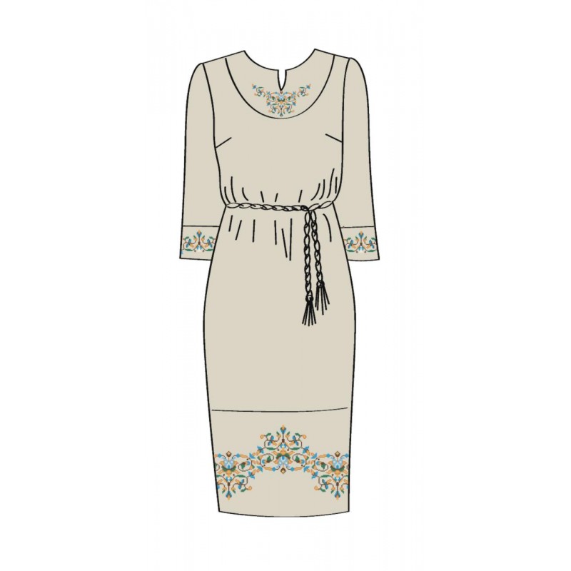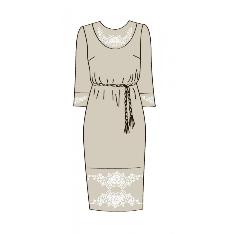 Женское льняное платье с поясом под вышивку и стразы.