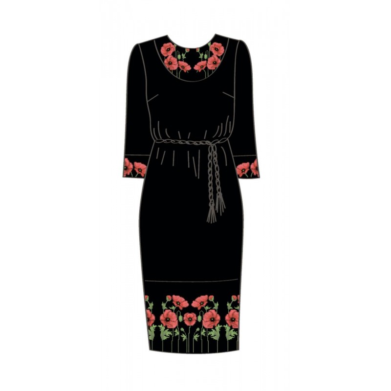 Женское платье с поясом под бисер, стразы и крестиком вышивку, чорного цвета.