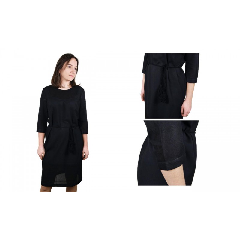 Женское платье с поясом под бисер, стразы и крестиком вышивку, чорного цвета.
