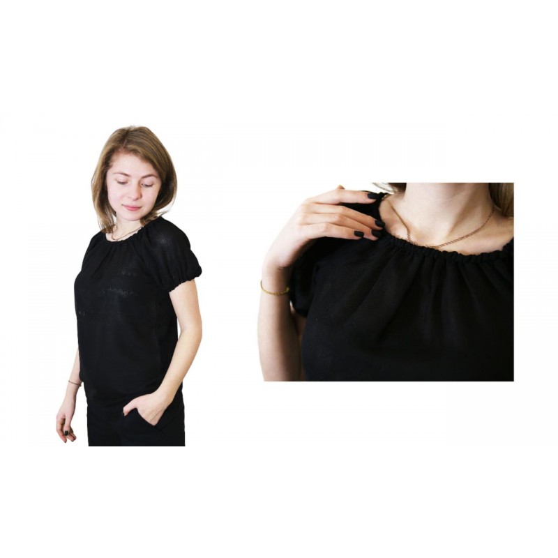 Готовая женская сорочка со вставками под вышивку бисером и стразами. Вставки расположены так, как показано на схеме. Сорочка чорного цвета с рукавом 3/4.