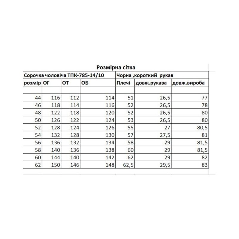 Наименование: Сорочка мужская, чорная, короткий рукав, размер 60